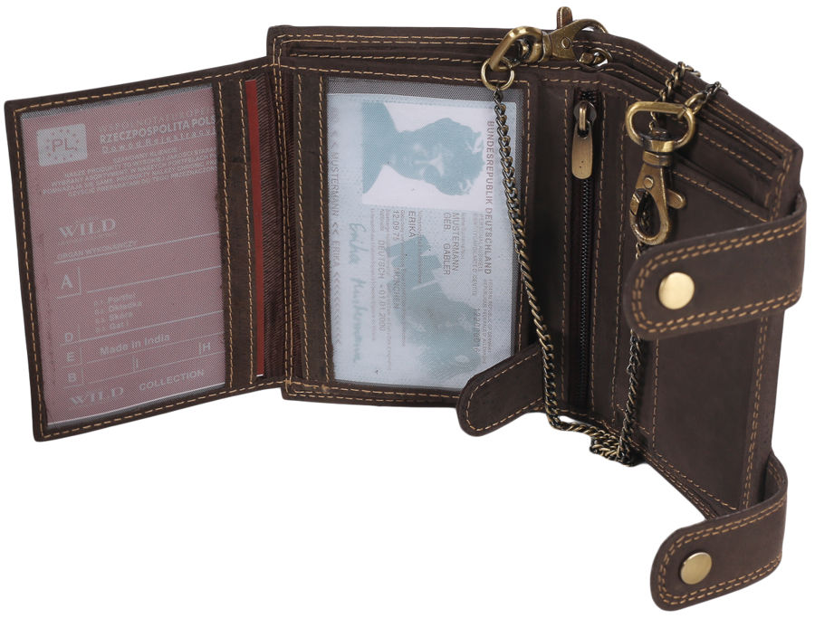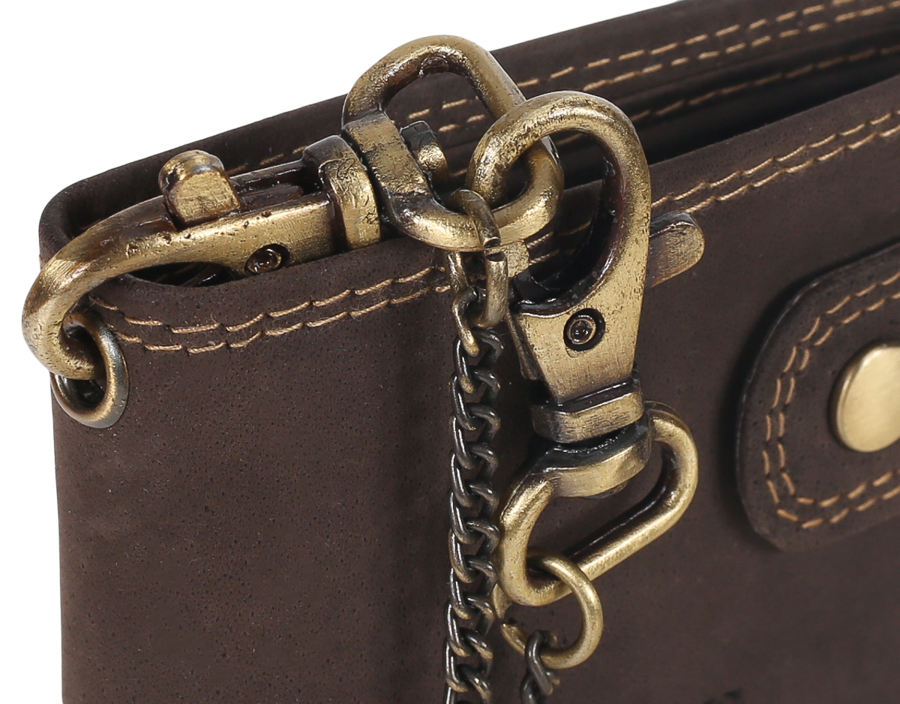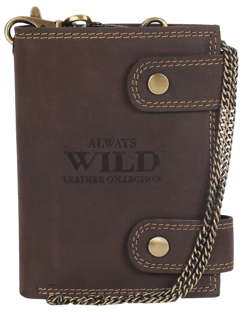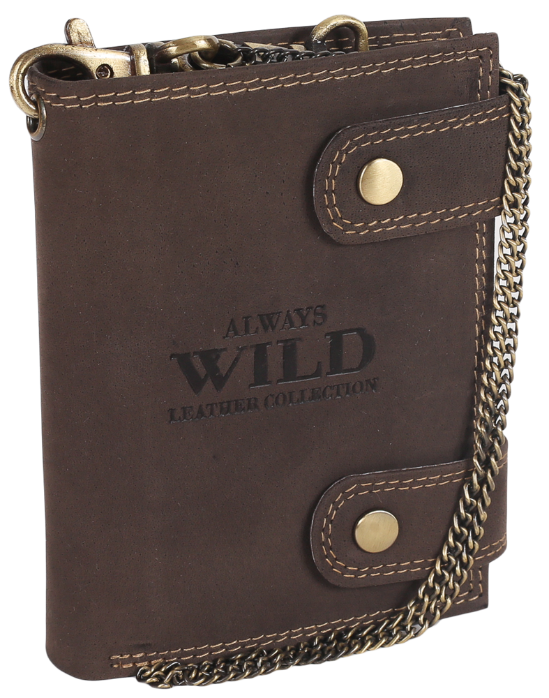 Atrakcyjny, skórzany portfel męski z mosiężnym łańcuchem – Always Wild