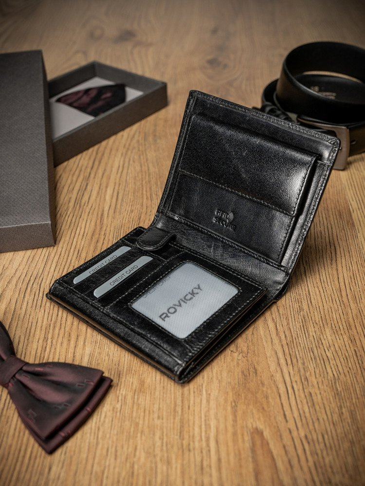 Portfel Polskiej marki ROVICKY to produkt klasy premium w przystępnej cenie. Wykonany jest z wysokiej jakości, naturalnej skóry licowej, w kolorze czarnym.