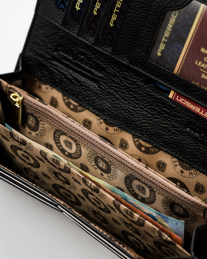 Ten model jest w stanie pomieścić także pokaźną ilość tradycyjnej gotówki. Kieszenie na pieniądze również wyściełane są odporną na otarcia podszewką.