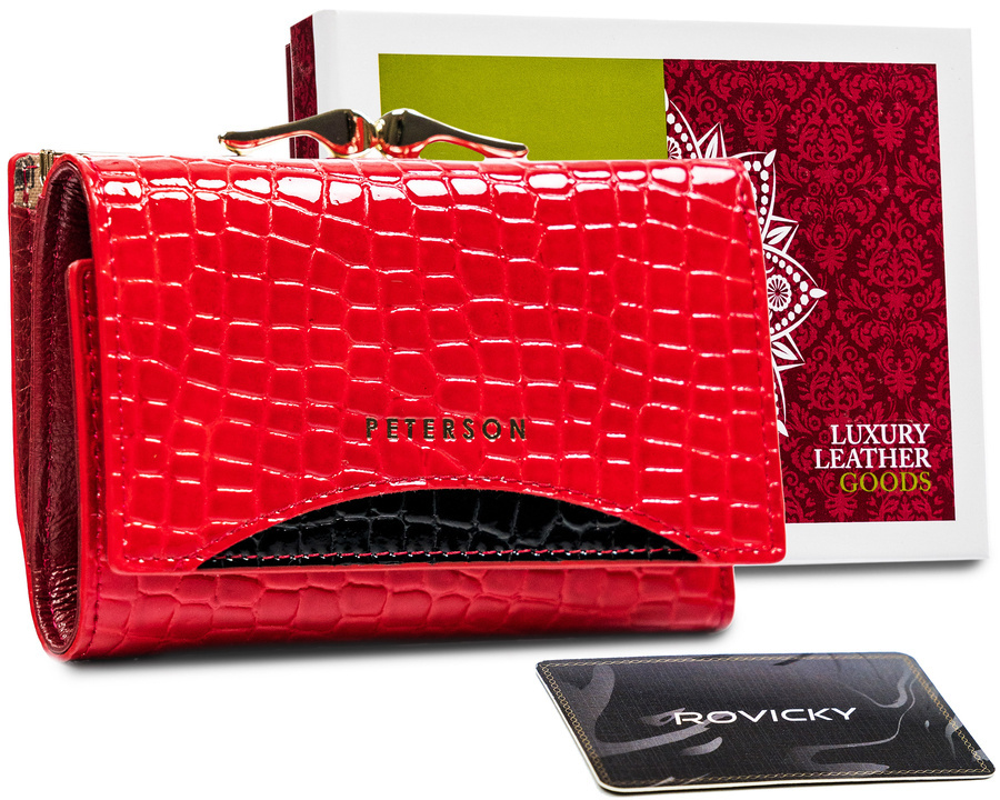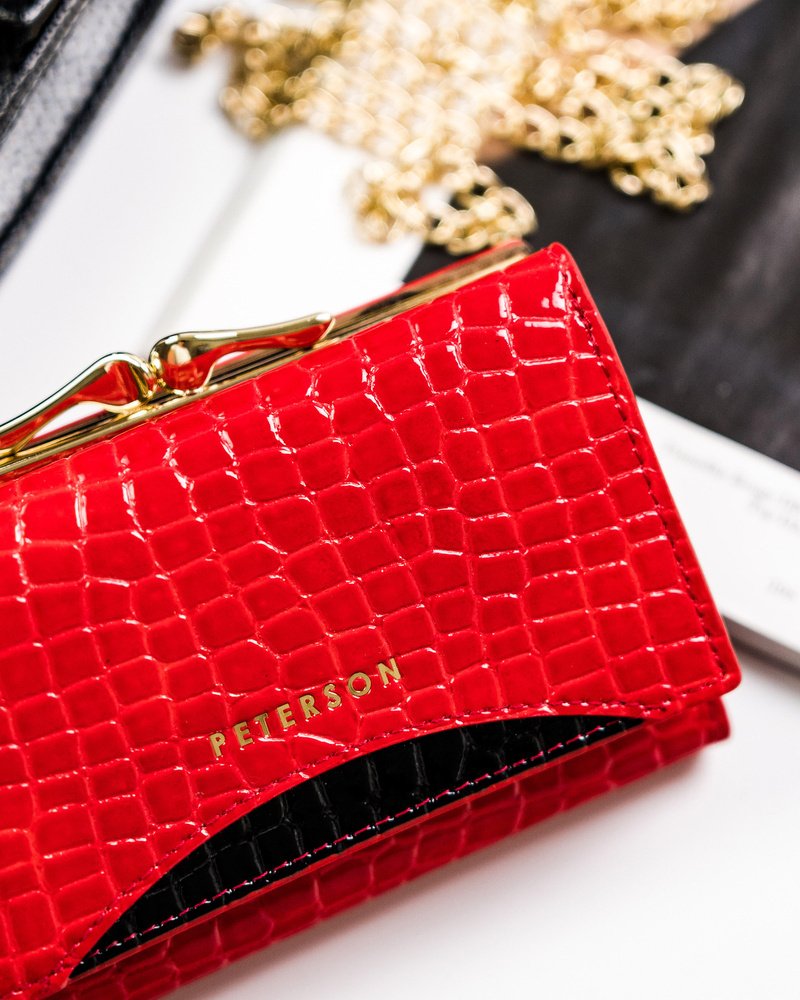 Lakierowany portfel ze wzorem skóry krokodyla – Peterson