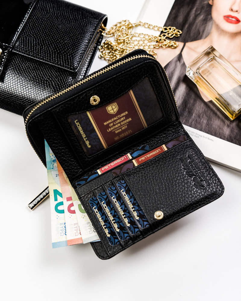 - 9 miejsc na karty płatnicze, wizytówki i dokumenty o standardowym formacie. Jedna z przegródek jest przezroczysta i świetnie nada się na fotografię.