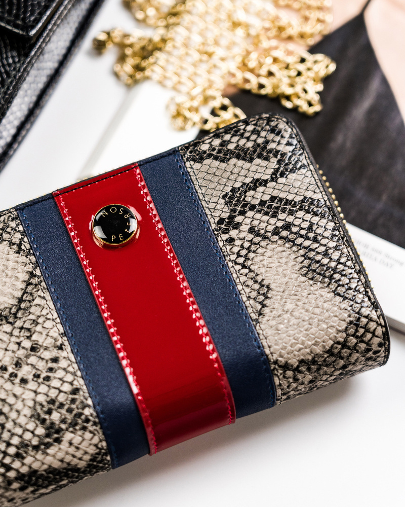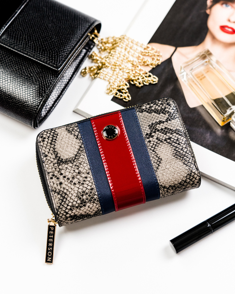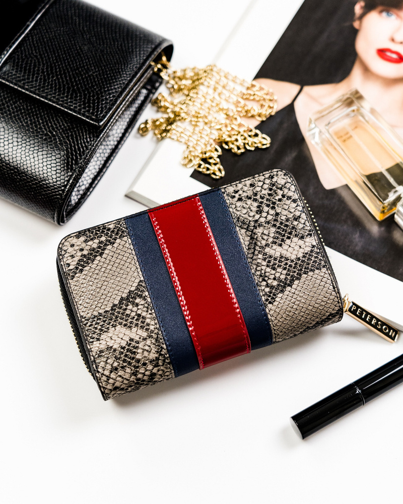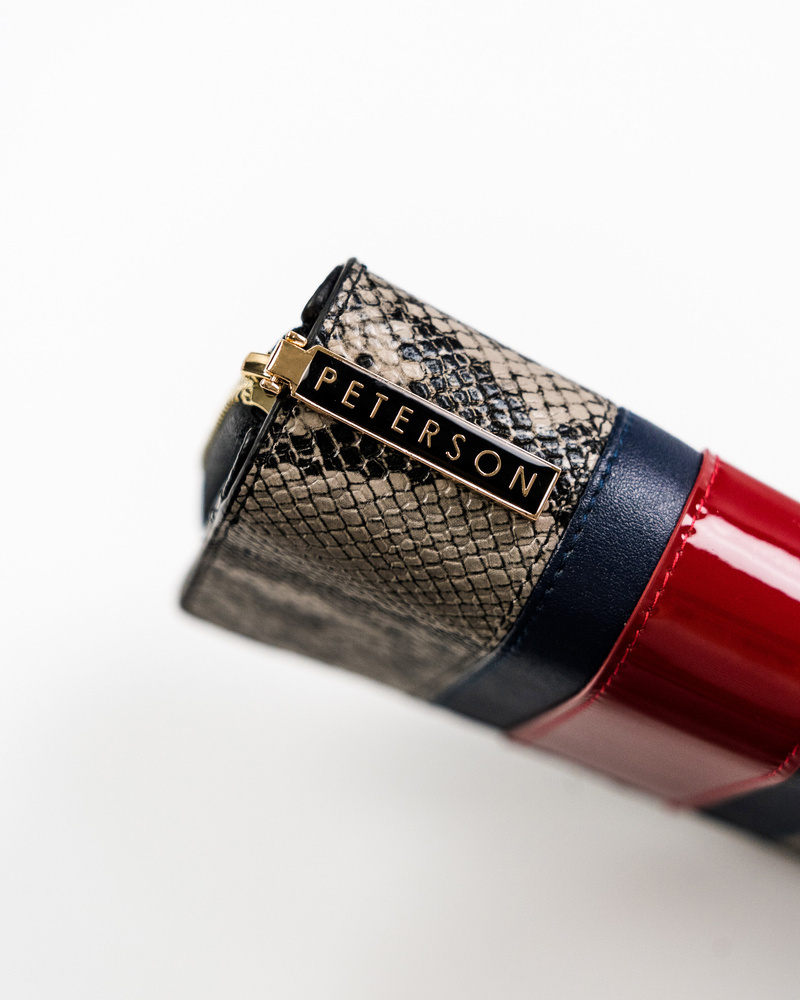 Pionowy, skórzany portfel z wężowym wzorem – Peterson
