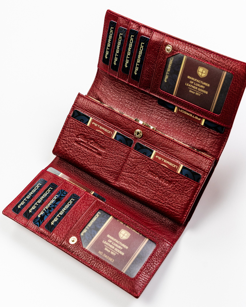 Skórzany portfel damski na karty z ochroną RFID – Peterson