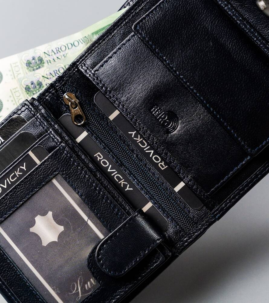 Przegródki na karty i dokumenty zabezpieczono podszewką. Pozwala to uniknąć otarć na skórze, podczas wkładania i wyjmowania kart.